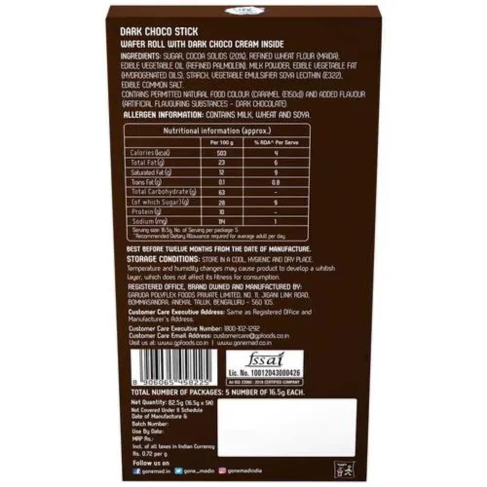 GERY GONE MAD DARK CHOCO STICKS BOX 82.5G