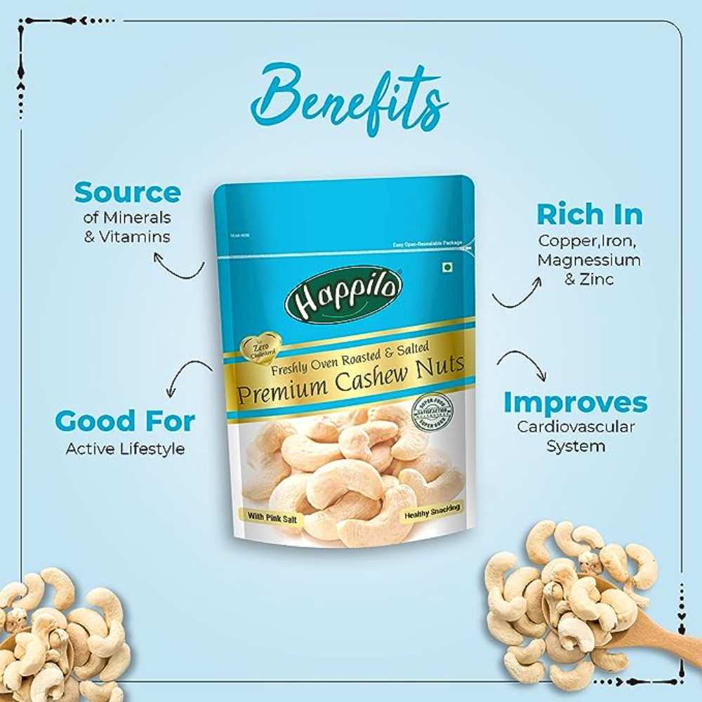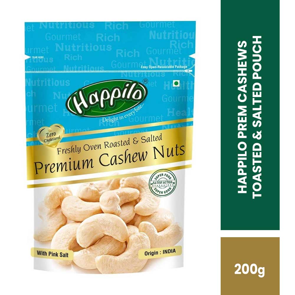 HAPPILO PREM CASHEWS TOASTED & SALTED POUCH 200G