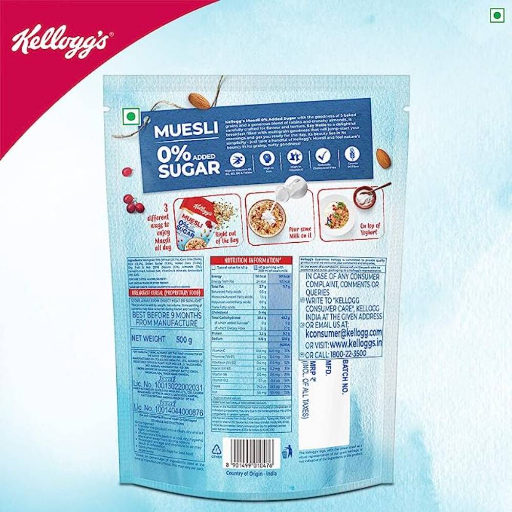 KELLOGGS MUESLI NO ADDED SUGER 500G