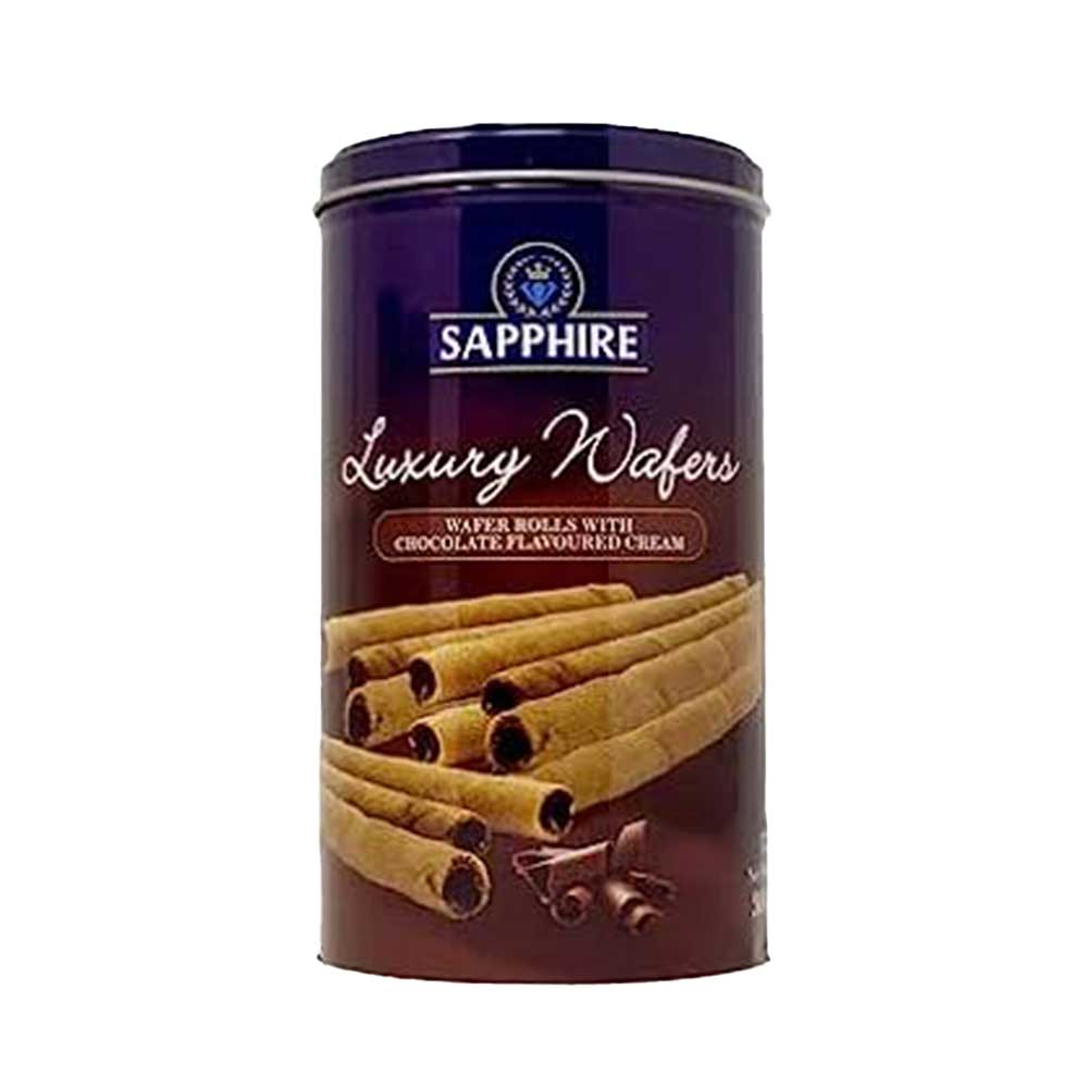 SAPPHIRE WAFER ROLLS WITH CHOCOLATE 300G TIN