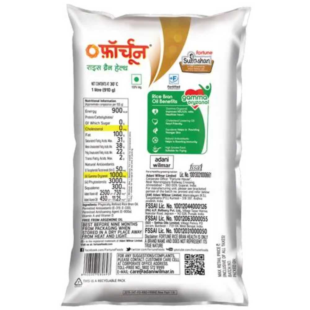 FORTUNE RICE BRAN OIL POUCH 1LTR