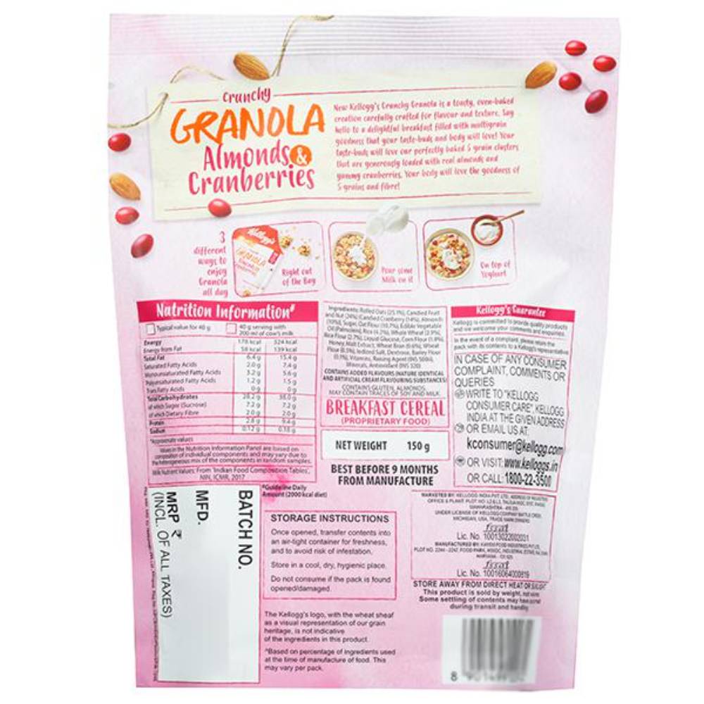 KELLOGGS GRANOLA ALMONDS CRANBERRIES 145G